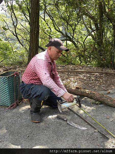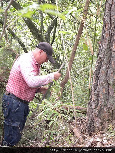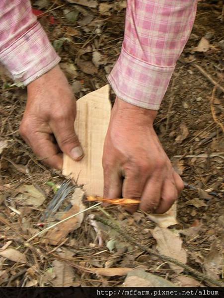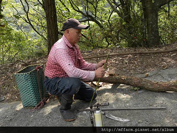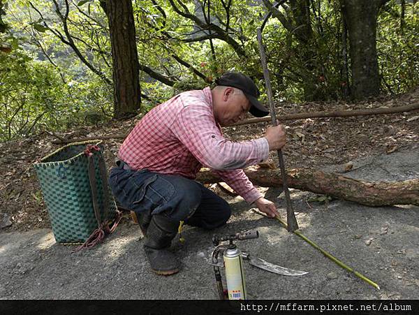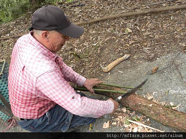 接下來要做抓山豬的陷阱,先用噴槍把箭竹烤軟。