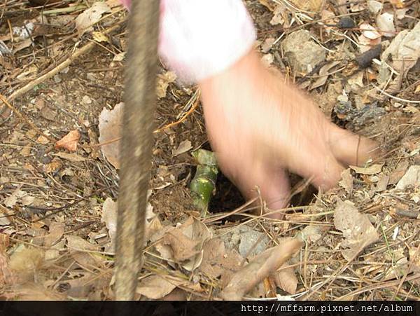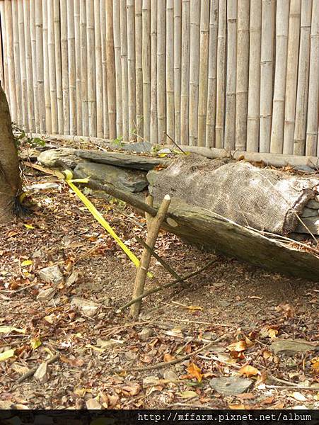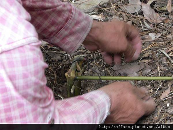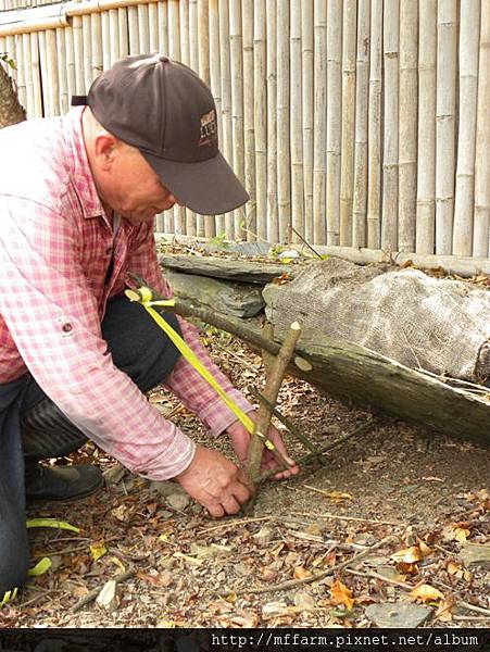 將ㄇ字型的箭竹安置在洞裡。