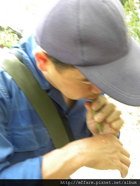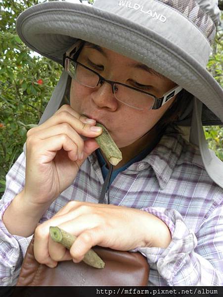 烏毛大哥的方法是將嘴巴靠在切成段的葛藤上,用力吹,汁液就會噴出來了!