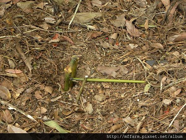 ㄇ字型的箭竹很好用,接下來它又是另一種抓鳥用的陷阱的基礎。