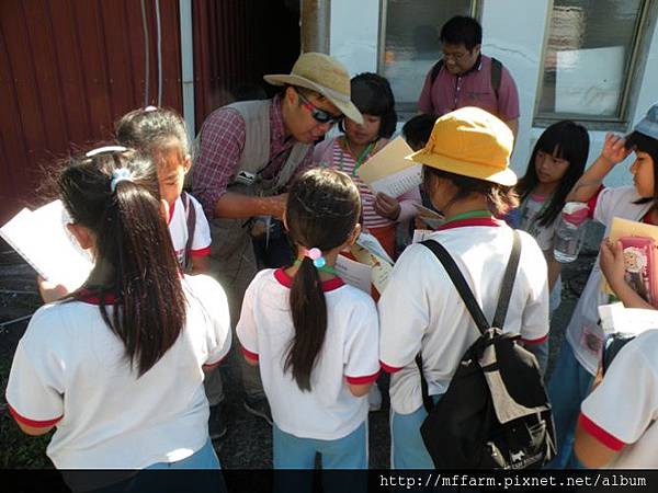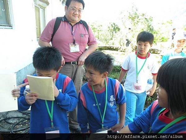 等待集合的春陽國小的小朋友們正好奇地看著並討論著活動手冊。