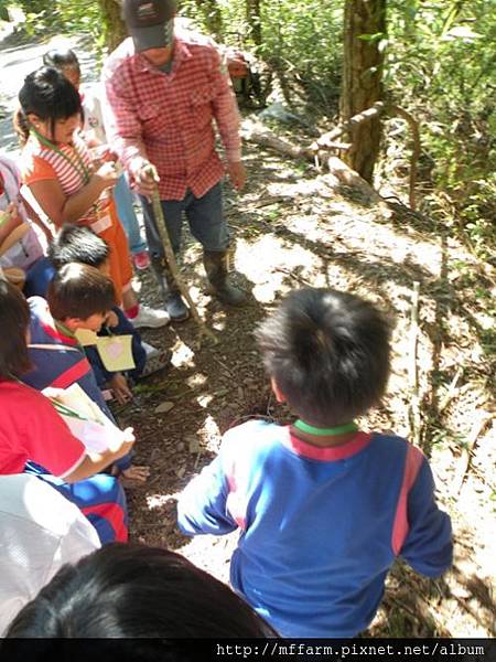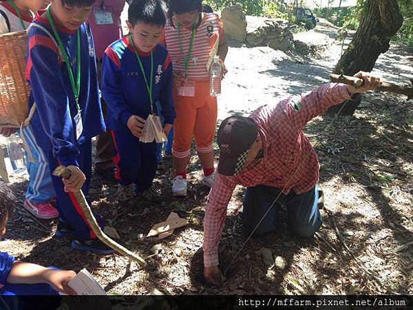 領取活動手冊及名牌後,小朋友們專心的聽過春陽國小校長的致詞,然後觀賞了外婆的青草舖短劇,旋即由外婆的三個孫子:小米、小棕與小松帶開進行尋找青草單的活動。沿路上我們認識了腎蕨、山胡椒、葛藤等與生活有關的各式植物與它的功用,透過用手摸、用嘴巴嘗、用眼睛看、用鼻子聞、聽關於它們與原住民族的故事,來認識這些就在我們生活周遭,並具有各式文化意義的植物,並對它們擁有更深刻的印象。