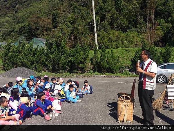 小朋友們坐在地上,聆聽春陽分場主任林鏈嘉先生致歡迎詞。