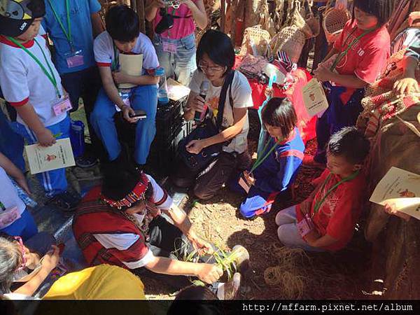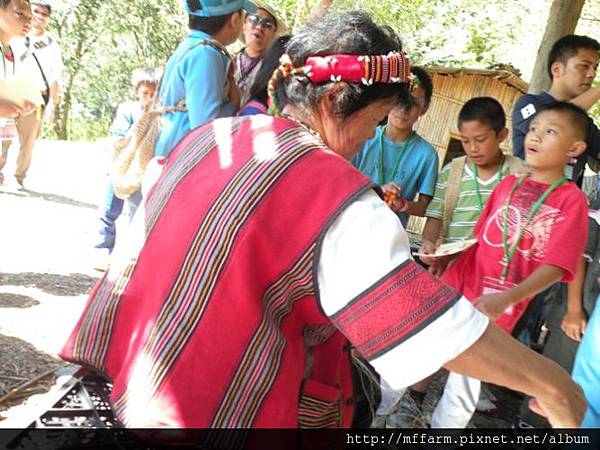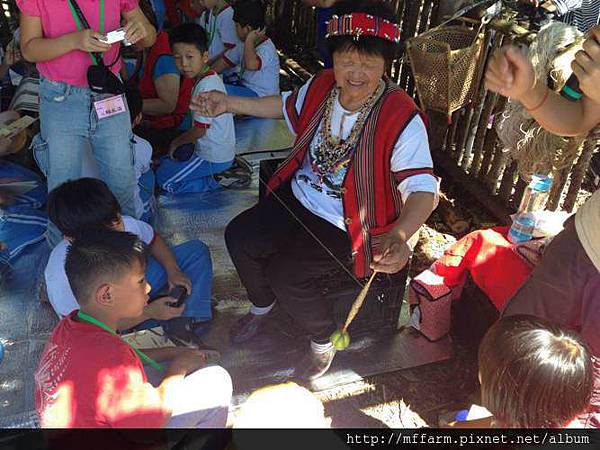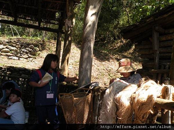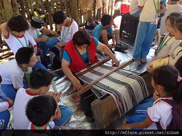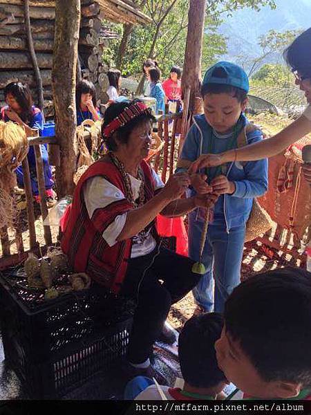 然後在賽德克族家屋區透過拉拜阿嬤刮取苧麻纖維的示範、進行現場刮取苧麻纖維的體驗、實際傳統織布機的操作,手牽手跳起賽德克族傳統舞蹈、大聲一起唱著賽德克族傳統的歌謠,以及觀看並嘗試操作烏毛阿伯的賽德克族陷阱,理解了早期人類適度從自然中獲取生活所需的生態智慧與對自然的尊敬與珍惜。