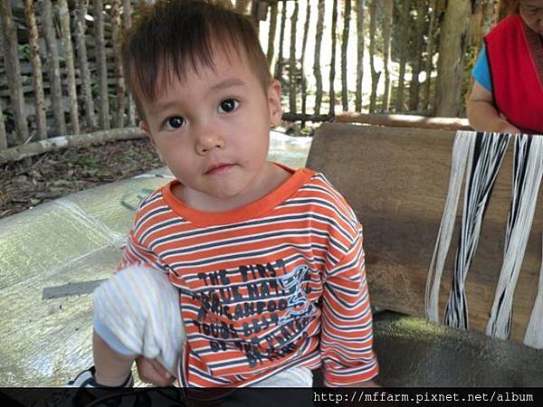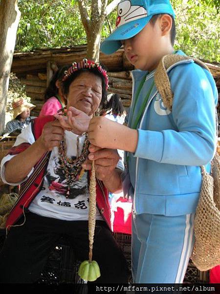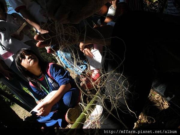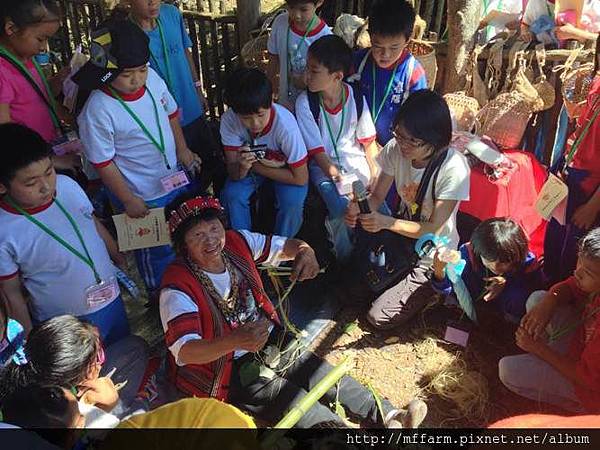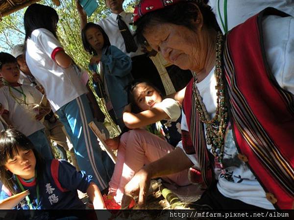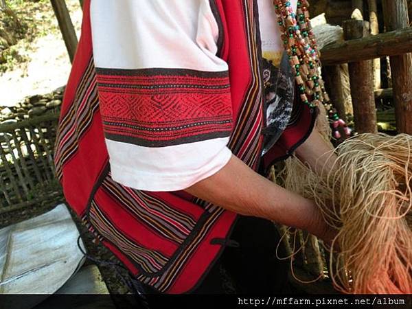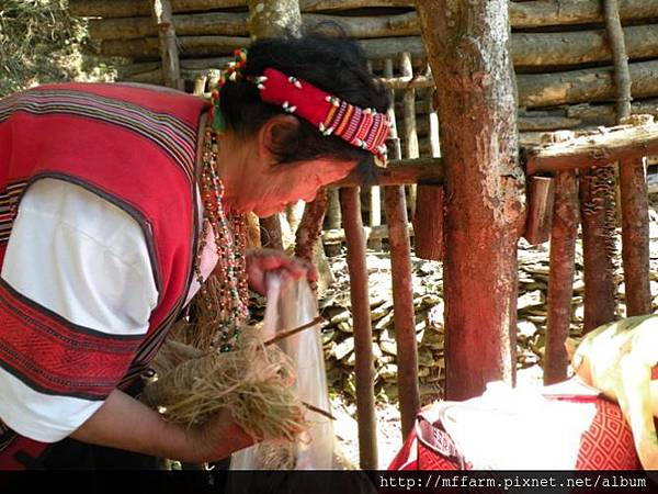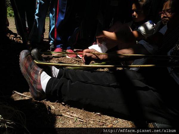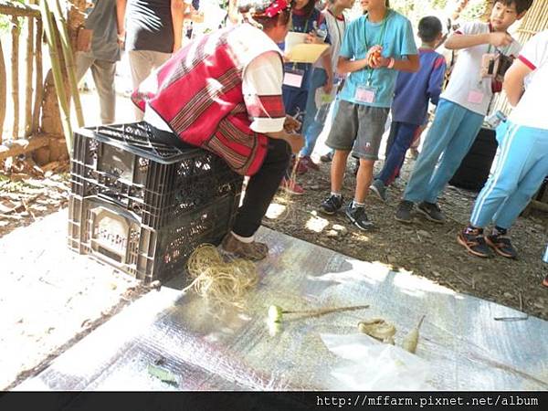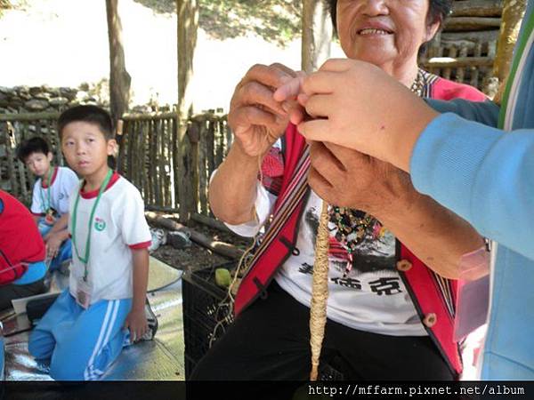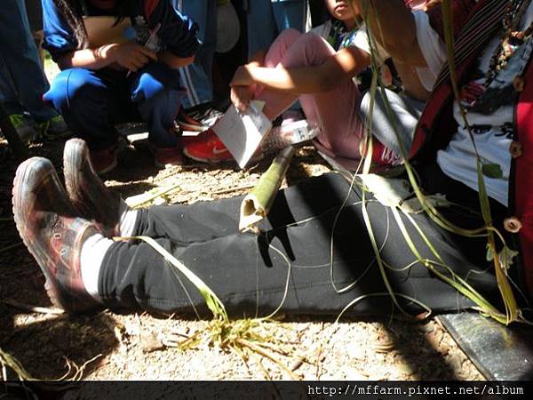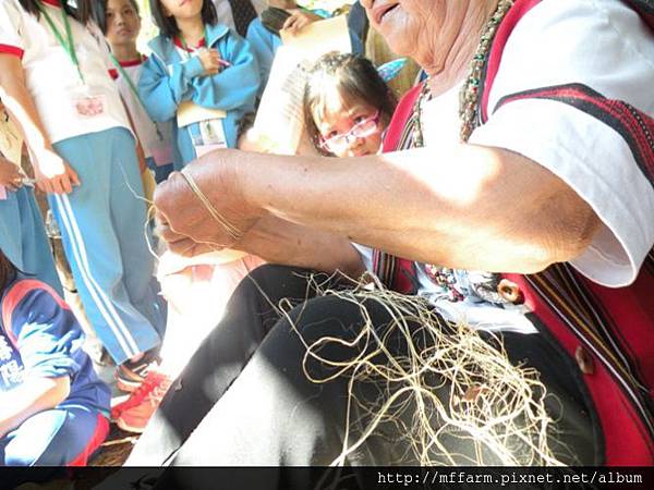 拉拜阿嬤要為小朋友們示範怎麼刮取苧麻的纖維哦!