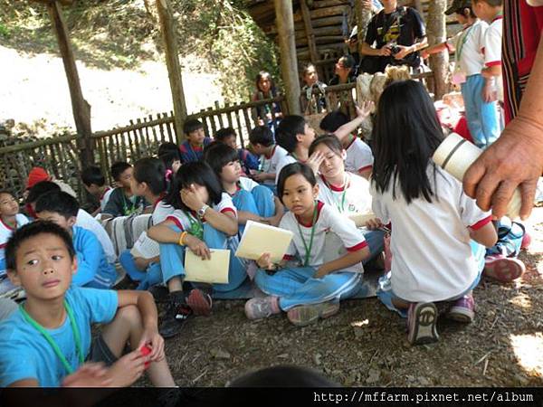 緊接著,離開家屋區,順著小徑走回集合處,休息一小時一起分享著各自帶來的午餐。一點整就要開始緊張刺激的闖關活動:透過表演讓隊友猜出所比畫的名詞是什麼的「比手畫腳」、強調生物與文化多樣性的「支援前線」與由排灣族五年祭刺球活動演變而來的「拋繡球」。在遊戲中,透過寓教於樂的方式,用三個闖關遊戲活動複習了上午在找尋青草單過程中所學習得來的一些知識及概念,而小朋友們都發揮了極佳的團隊精神,分別在最後獲得了「最佳風雲獎」、「最佳精神獎」、與「最佳勇氣獎」。