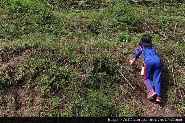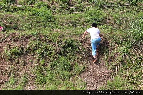 小小的土坡,也是有難度的呢!加油!爬上去了!