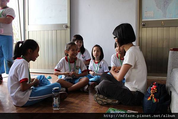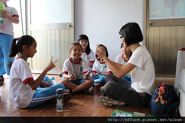 過午餐的休息時間,小朋友們與愛玉姊姊一起玩手指遊戲。