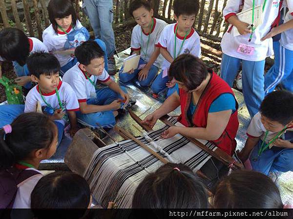 珠美阿姨則為小朋友們示範傳統織布機的操作。