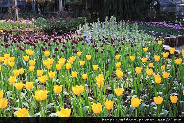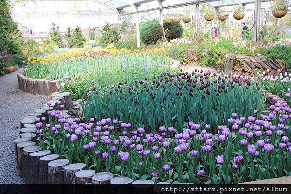 有著各式鬱金香的溫帶花卉區。