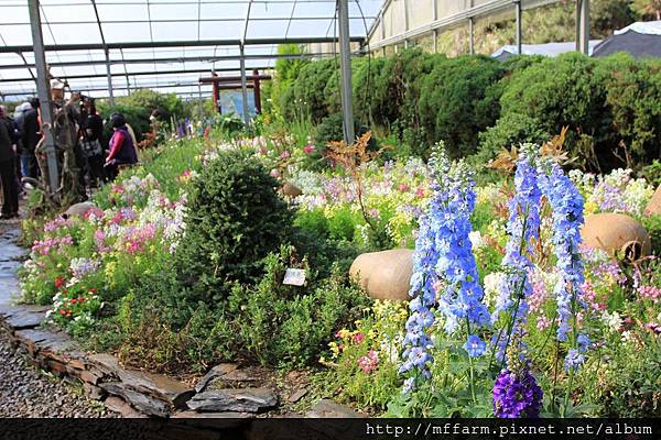 溫帶花卉區裡有工作人員精心為大家設計的拍照點。