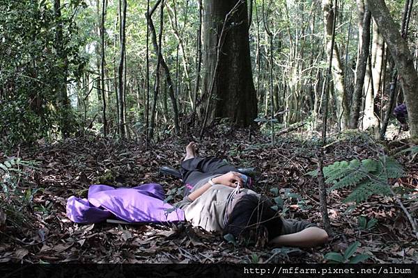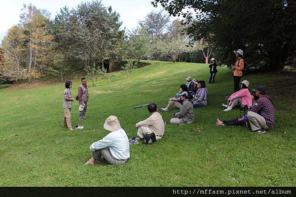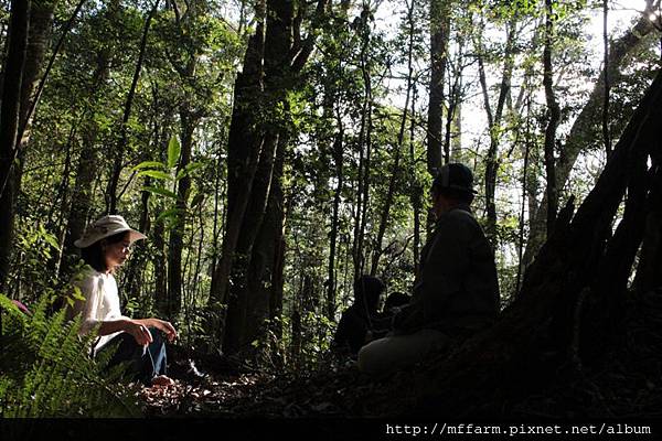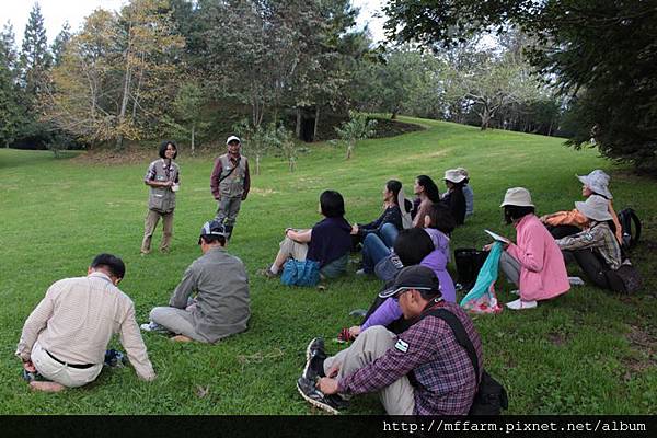 臺大山地實驗農場首次試辦的「園藝紓壓體驗課程-與植物作朋友」於2013年10月13-14日舉行,老天爺給了我們的首次嘗試一個美好無比的天氣,3位重量級講師、2位資深解說員與10位前來參與活動的朋友,在秋日的午後,走進臺大山地實驗農場附近的森林,或躺或臥,或找尋或凝視,聆聽自然的話語,闔眼諦聽自己心裡的聲音。時間像金沙一般靜悄悄地流逝在彼此的陪伴裡,當心被充滿時,我們溫柔地向森林道別與傳達謝意,謝謝森林給了我們一個如此美好的秋日回憶。