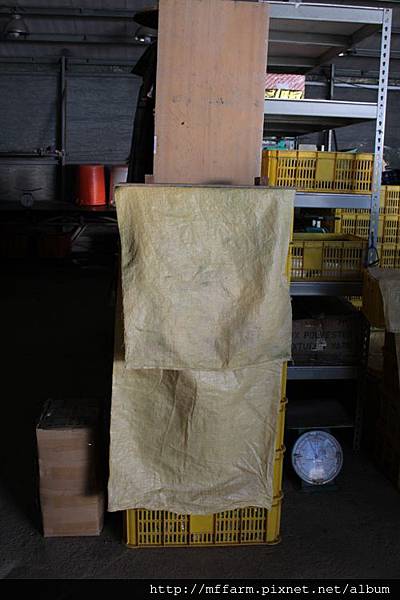 馬鈴薯曬到太陽會變綠或發芽,所以工作同仁會把採收回來的馬鈴薯用麻布袋蓋起來。
