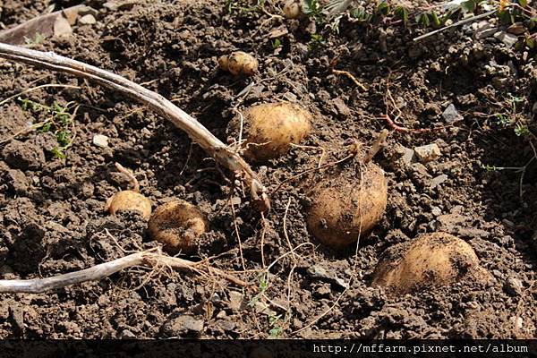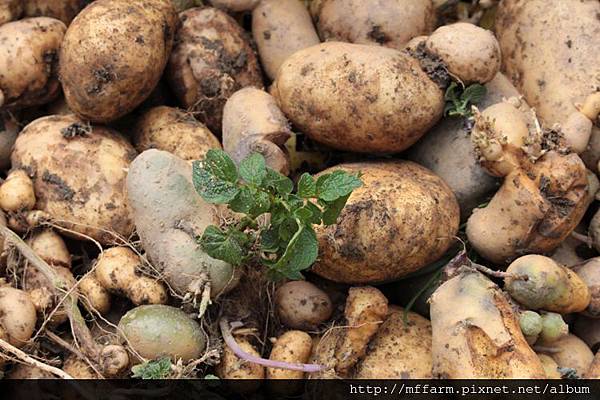 有的馬鈴薯在陽光下及泥土裡待太久,已經變綠或發芽,就不能吃嘍!但是經過挑選後可以再當作明年的種源材料。