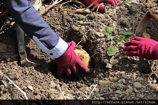 阿雄示範如何挖馬鈴薯,而不會傷害到它。