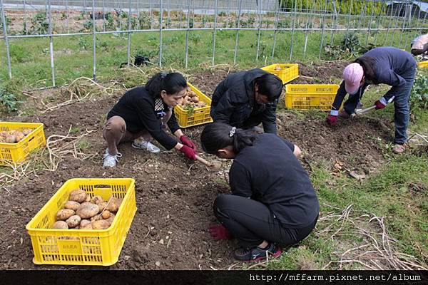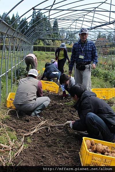 大家都好認真的在挖馬鈴薯,有點考古的氛圍呢!而大家的籃子也慢慢被挖起的馬鈴薯裝滿了呢!
