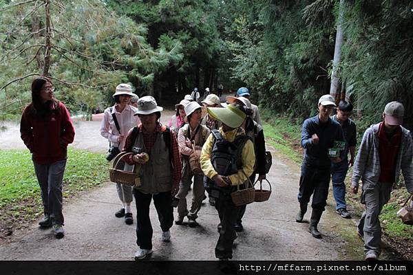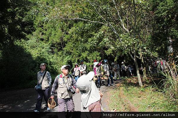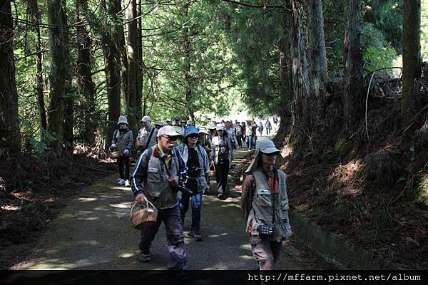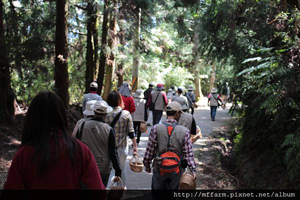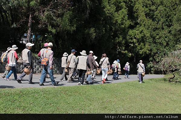 採完蘋果,大家愉快的討論著並走回教展中心。