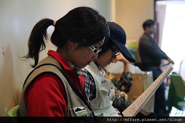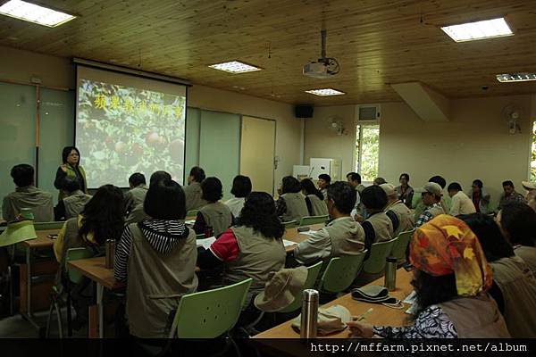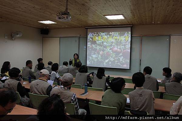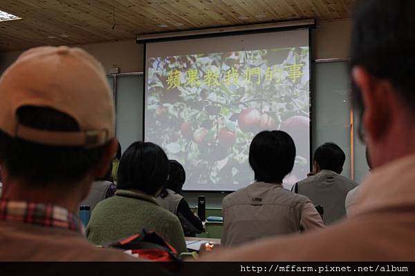 首先由臺大山地實驗農場的李副場長為志工老師及所有同仁們說明一些即將調整的想法與做法,並鼓勵及感謝所有志工老師們的協助與幫忙。接著由教學研究組的解說員李圓恩小姐,分享採果簡報「蘋果教我的事」,之後就簡報內容進行討論與修正,告一段落後,經營組吳煥斌先生再為大家說明2013年採果活動的注意事項後,便快樂的出發採果去!
