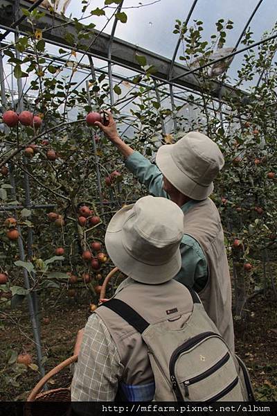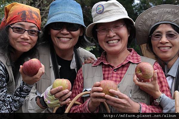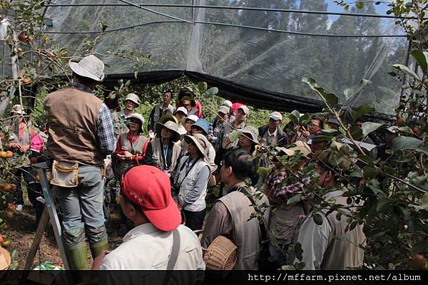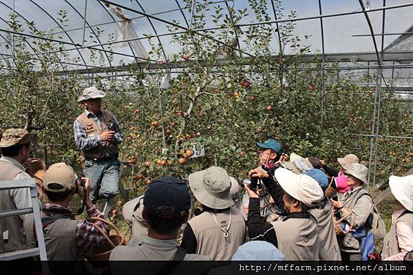很快地,一年一度的梅峰「蘋芬秋色-蜜蘋饗宴」採果活動又即將在2013.10.26-12.1舉行了。雖然今年的富士蘋果因四、五月份雨水的影響而導致產量銳減,但仍有非常多朋友熱情響應2013年的「蘋芬秋色-蜜蘋饗宴」採果活動。而農場主管與工作同仁們,更用心準備了採果演練的行程,與即將擔負起採果活動重要解說團隊成員的志工老師、解說員們,一起就整個活動進行演練及討論。