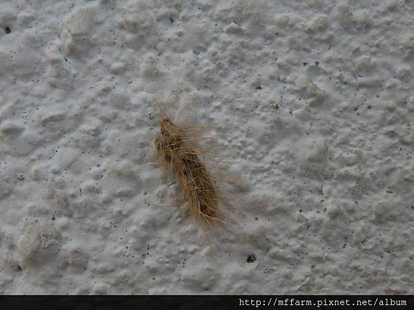 哇!這種蟲卵實在太有趣了,長得像不像巧克力口味的甜甜圈?還是散落一地的鈕扣呢?這是另一種毒蛾媽媽的傑作。很多蛾媽媽,一羽化後,就會在繭的附近產下卵粒,不過若是沒有雄蛾的貢獻,這些沒有受精的卵就不會孵化成小毛蟲的。只能說單純是大自然裡的裝置藝術,不過誰說,總得要有用處、有結果的呢?這大概是蛾族嘗試對人類提出的大哉問吧!