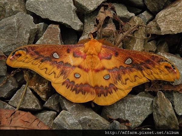 銀目天蠶蛾,翅膀上圓型的透明造型,有預防的人如鳥類攻擊的效果。(攝於梅峰)