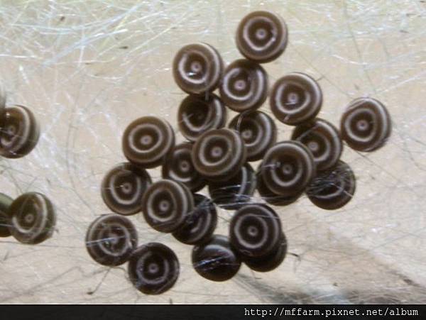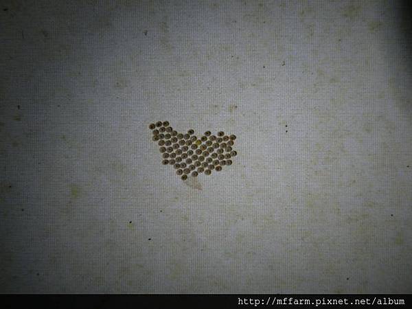 聚集一堆的天蠶蛾卵粒。(攝於梅峰)