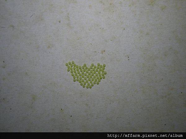 蟲幕上剛被產下的蛾卵。