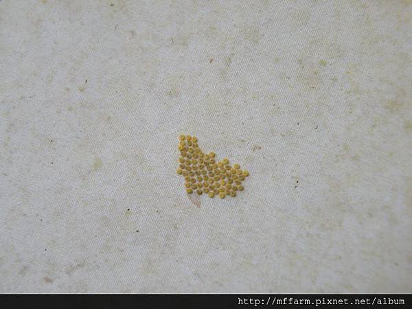 被產於觀蟲布幕上的汙燈蛾卵。(攝於梅峰)