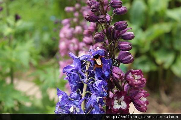 梅峰常見的熊蜂,正在大飛燕草上頭忙碌著。