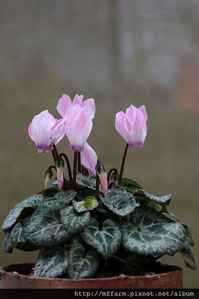 一葉蘭展示區有著不同花色層次的麗格海棠和仙客來盆栽。