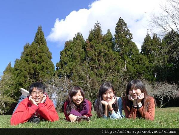 學生住的是10人房的通舖,空間很寬敞,設備齊全,不過這五天下來不知道是不是錯覺,總覺得室內比室外還要冷。行李備妥後大夥便先自由活動,當大家都往下走到福利部及大草原,我們卻決定往上看看,本以為山窮水盡疑無路,沒想到一個彎之後竟柳暗花明又一村,梅峰一號靜靜坐在那裡等待我們的大駕光臨。