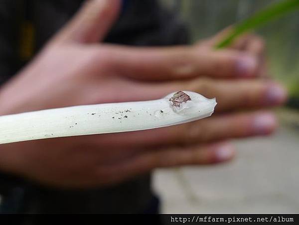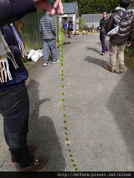 參觀之餘我們玩了折百子蓮葉子的小遊戲,由於葉脈水分充足,葉子撕斷後仍可連結,因此我們一人摘一片開始折葉子,看誰可以折最多段。長長一條晃呀晃的,我折了約莫21段,獲得一張書籤。