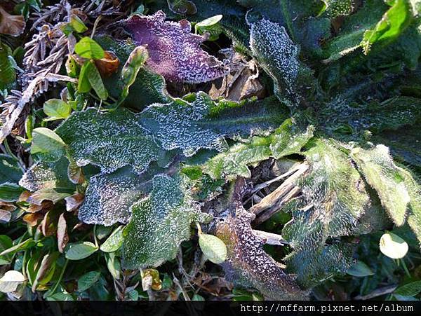 太陽很大,但是沒有陽光的地方依舊結著霜。梅峰日夜溫差有點大,晚上約0度到負4度,白天約8到10度,溫度不算高,但因為「沒風」,加上太陽的照射及我們有在活動,白天實際感覺上似乎沒有那麼冷。好像可以體會到:「朝穿棉襖午穿紗,抱著火爐吃西瓜」的真髓。