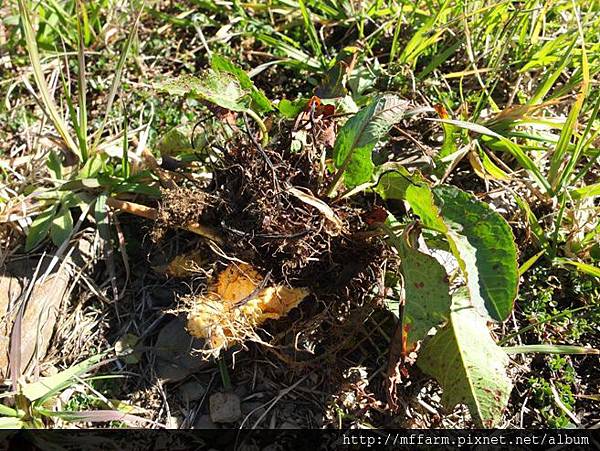 羊蹄是一種生命力很強的植物,除去它需連根除掉,否則它粗粗的根或者是被砍斷的碎片都會不斷的長出新芽來。根很深也很粗,移除上頗費力的,期間還有同學因方法錯誤、施力不當而弄斷了好幾根鋤頭。