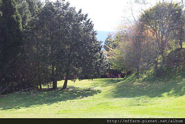 伴月坡上層層光影,在草地上揮灑出不同的形狀圖案。