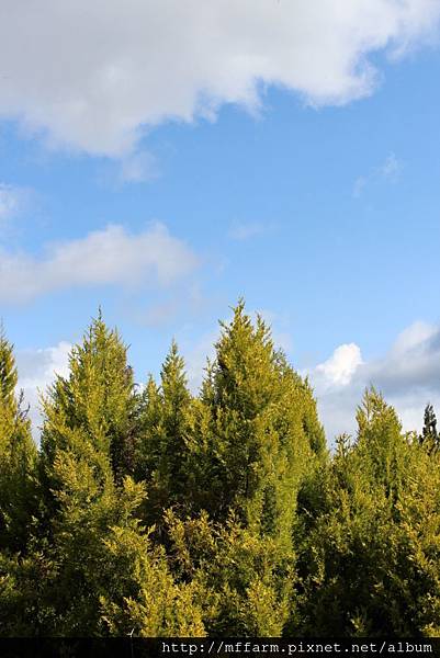 繞上了第一平台,香冠柏映襯著藍天,一片開朗。