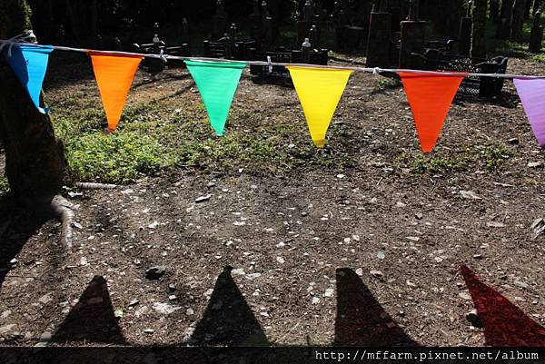 迷宮區正在休養中,因此被圍上彩色的旗幟。