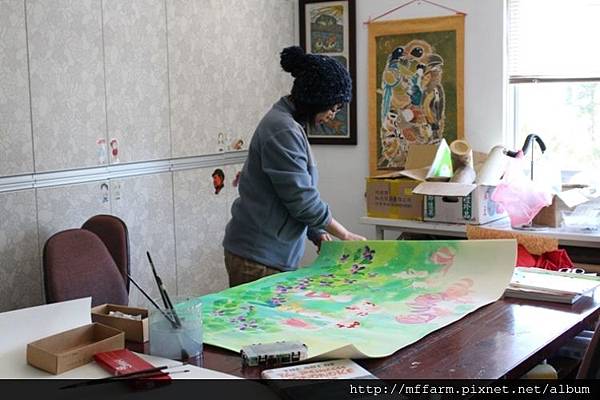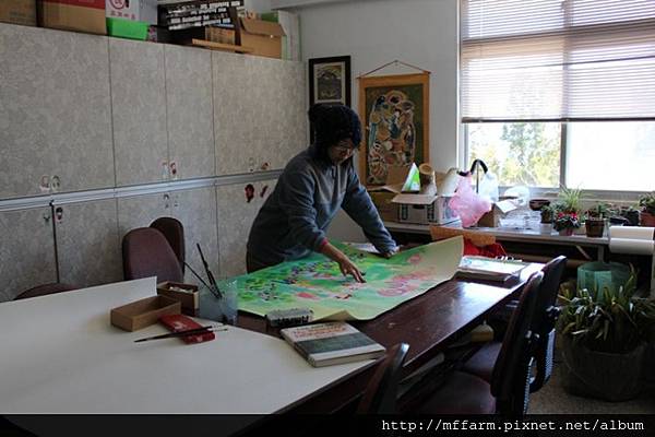 正在繪製豐富的森林生態創作的解說員俐璇。