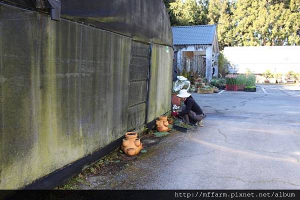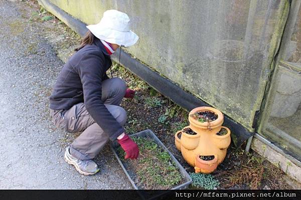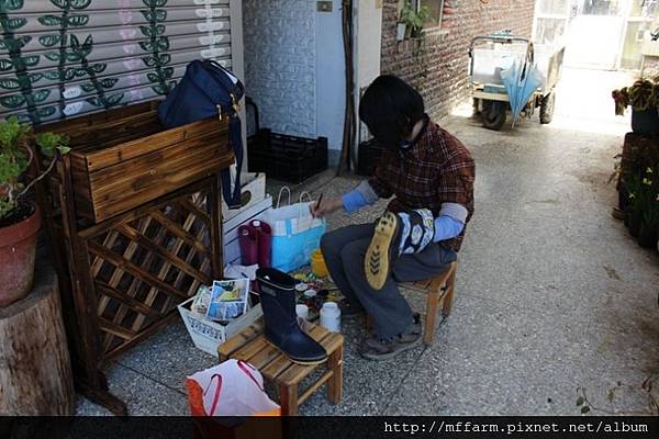 整理著一葉蘭展示室外頭環境的教研組研究助理趙俐雅小姐。