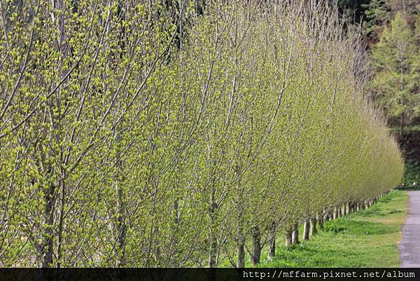 春天到了,白楊樹也由光禿禿的枝條,換上鮮綠的衣裳。