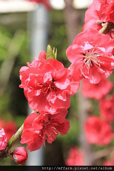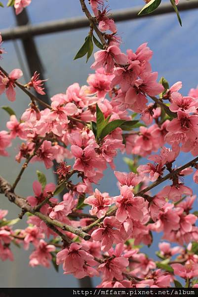 桃花開始冒出綠葉囉!