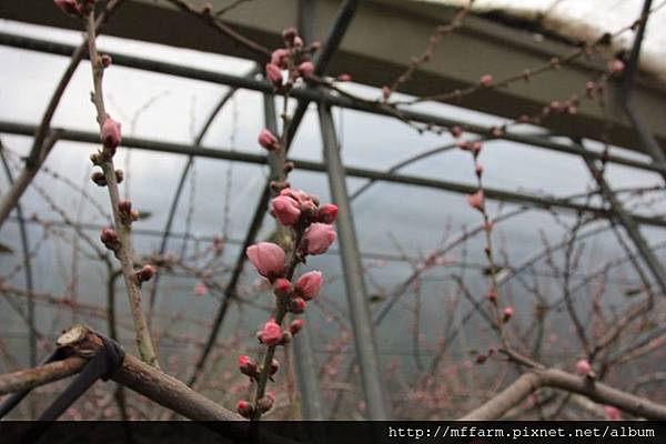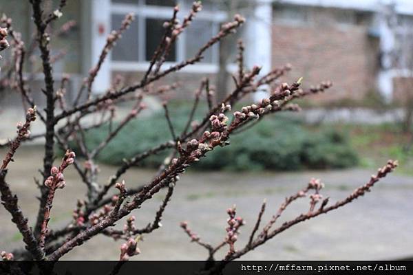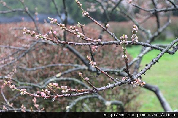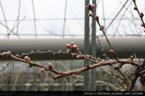 水蜜桃園已綻開花苞的水蜜桃花(3/12拍攝)。