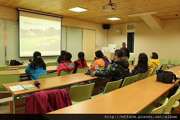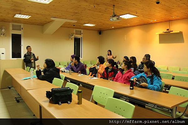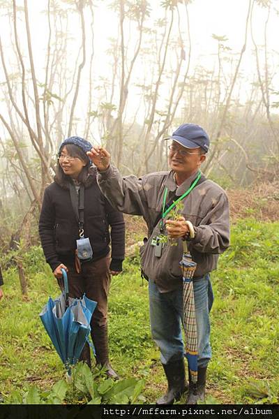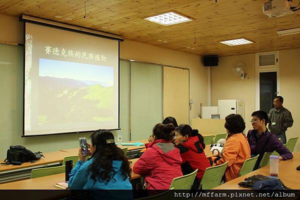 夜間分享課程,林信雄老師分享梅峰四季,嚴老師則分享長期紀錄各原住民族運用周遭植物生活的智慧。。