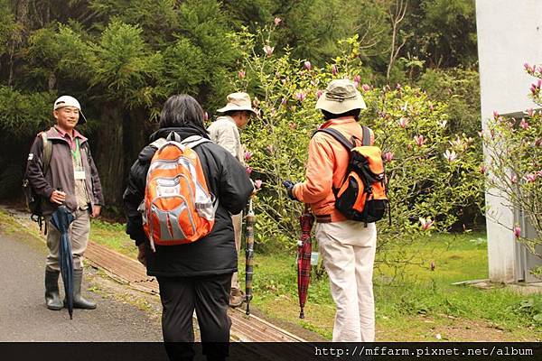 伴月坡上青楓下,解說員與學員們自我介紹。