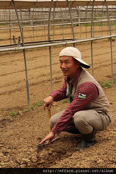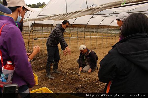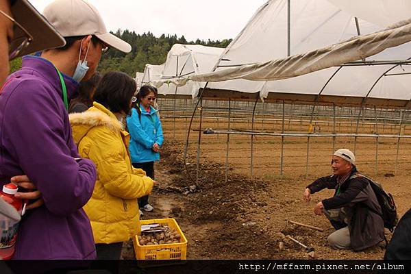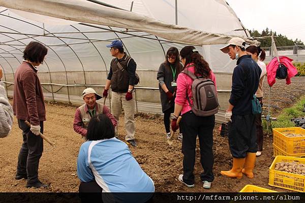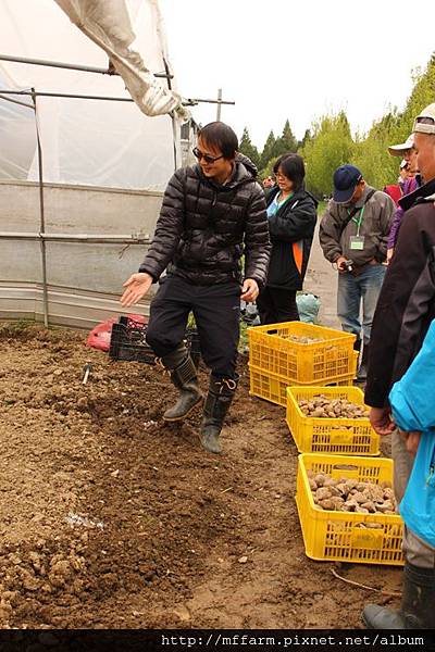 用過早餐後,經營組同仁吳煥斌先生為學員們解說馬鈴薯種植事宜。