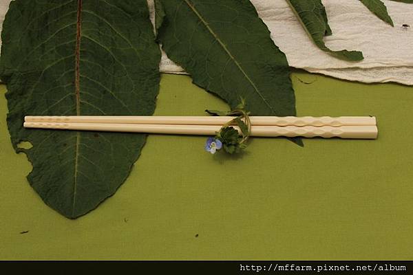 有著美麗台北水苦蕒做為裝飾的筷子。
