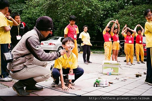 大頭小狀元拍攝時在伴月坡草皮上的疊羅漢。