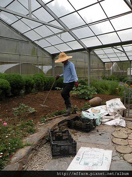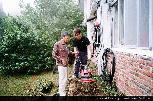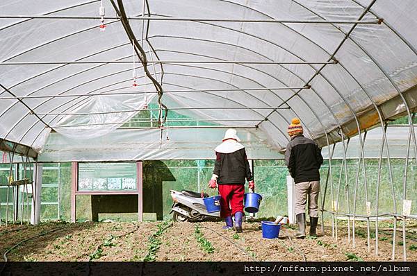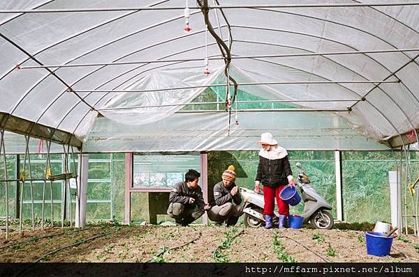 和解說員家麒(阿土)一起,陪伴經營組的阿姨種植菠菜。