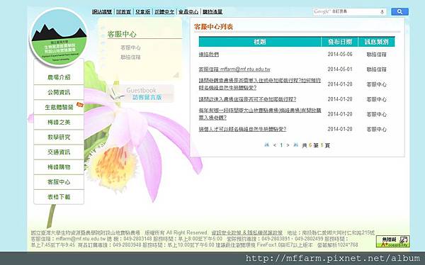 第七個選項「客服中心」提供使用者常見問題的解答,以及與臺大山地實驗農場的連絡方式。