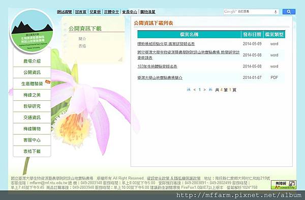 臺大山地實驗農場官方網頁為提供給使用者更便利的操作介面,歷時一年半,於5月份全新改版。